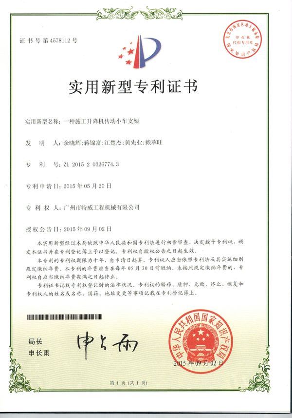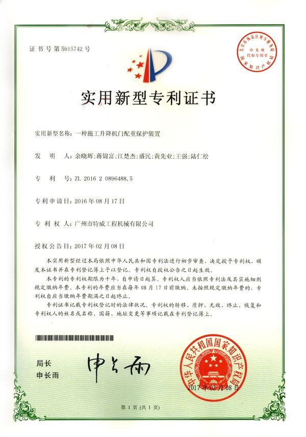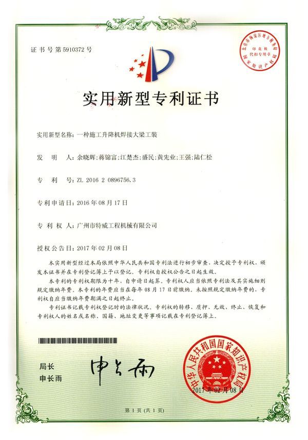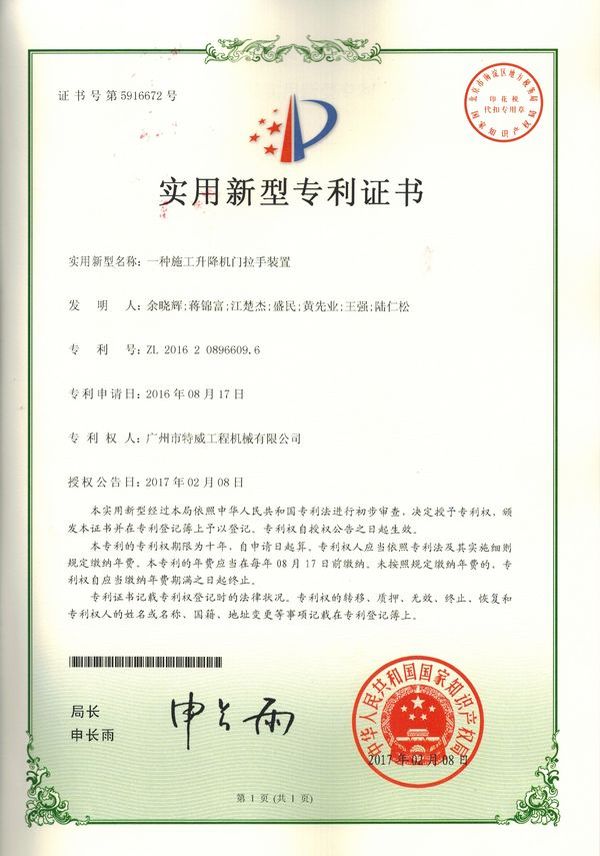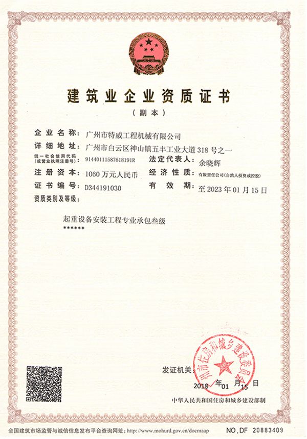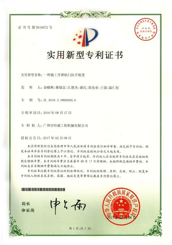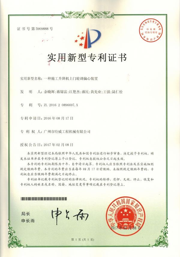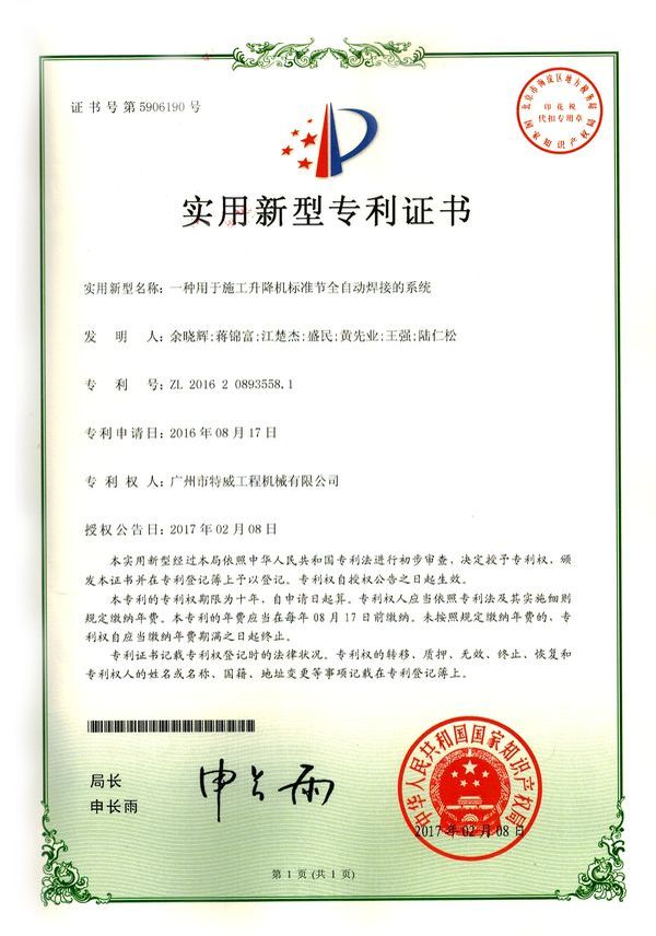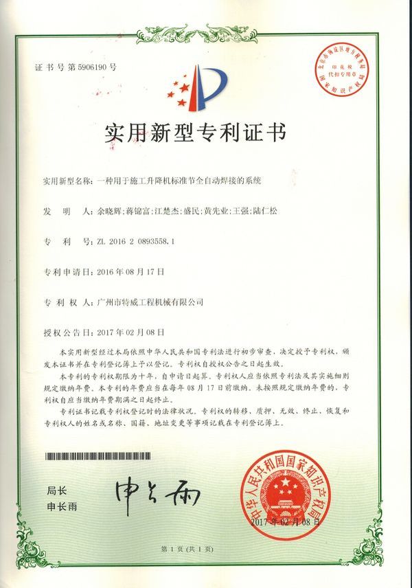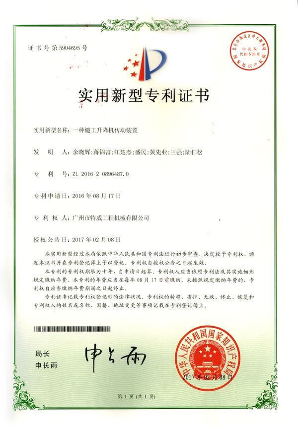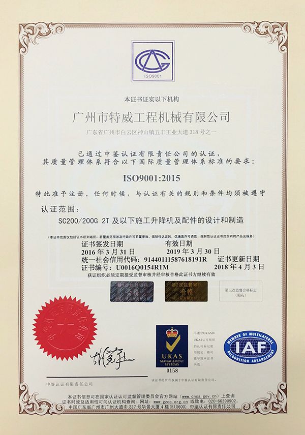 走进特威 Enter Twain 精益求精 传承工匠精神 星空网官方站入口地处广州市白云区神山镇,广清高速神山出口附近,是一家施工升降机的专业生产厂家。公司成立于2011年,占地100000多平方米,注册资金1060万元,现有员工300余人其中工程技术人员33人,高级技术人员52人。SC200/200G型施工升降机是特威公司的主导产品,是一种靠齿轮齿条传动的电梯。具有广泛的用途,不仅可用于一般的高层建筑施工的人、货运输,还可用于工业、电力、矿井、石油、化工等领域的人货运输。整机的工作级别为A8。 公司产品严格执行行业标准并进行大量人性化处理,在吊笼内饰、电控箱、驾驶室等部位进行优化改进,使用起来更为方便、安全。了解更多特威简介发展历程资质荣誉服务理念